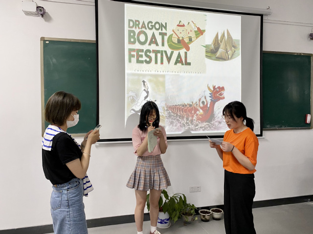 在课程思政的教育引领下,语言知识的传授和价值导向的结合体现在每一次授课过程中。本周学习的口译专题是“节日与文化”。同学们在课前通过查阅资料,了解中西方传统节日的风俗习惯和文化内涵,在课上进行对比和探讨。金汤老师将口译训练任务的重点放在介绍包括元宵节、端午节在内的中国传统节日上,一方面,通过口译内容加强学生对中国传统节日及其历史文化内涵的认知,另一方面,通过英汉互译的练习帮助学生掌握相关表达,让学生能够用英语讲好中国传统文化,讲好中国故事,增强文化认同和文化自信。