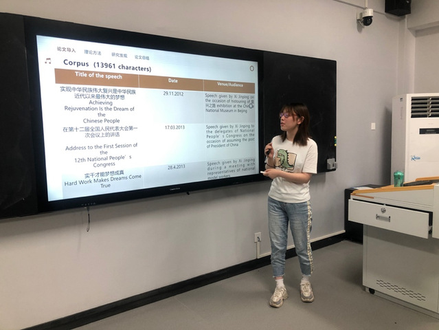 第二,本课程在讲解认知语言学单元,基于该单元的需阅读的学术论文,通过学生小组展示,对习近平主席政治话语的概念隐喻进行解读和分析,从而帮助学生更深入地学习习近平主席在不同时期的演讲中传达的“中国梦的概念。概念隐喻的角度来解读政治话语是近几年较流行的学术研究方向,通过学习该单元概念隐喻的内容以及该篇论文的研究方法和研究结论,学生熟悉中华文化的精髓,理解中国梦涵义提升自身的人文素养。