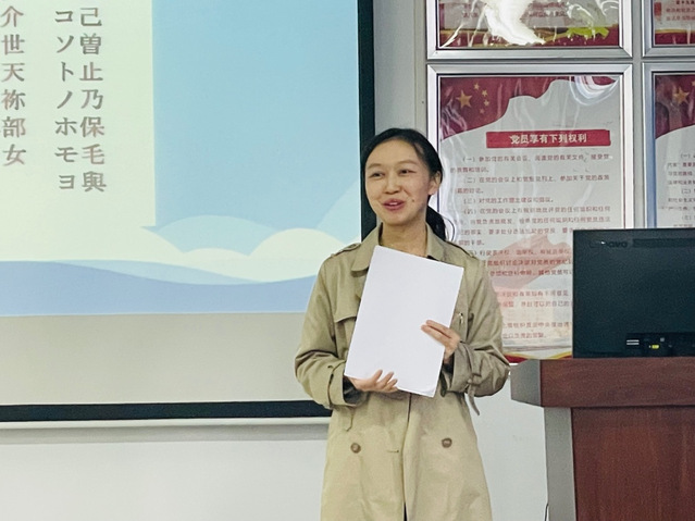 尹雪扬老师基于《基础日语》课程,遵循“润物细无声”的原则,在入门阶段,通过日语中假名的由来,进一步加深学生对中国历史文化的理解。同时,通过学习和讨论,发现现代汉语中也有很多词来源于日语。了解两国语言之间的联系,可以增强学生作为外语学习者的文化包容心,树立文化自信。