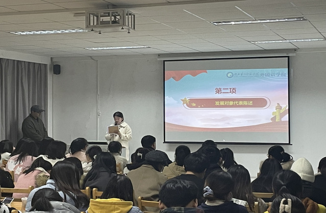 此次大会主要讨论接收郑若格等33名发展对象成为预备党员的问题。19级英语本科1班的郑若格同学在汇报中提到,她会坚定自己要更加努力的决心,时刻牢记党组织的纪律,以党员的素质来严格要求自己。