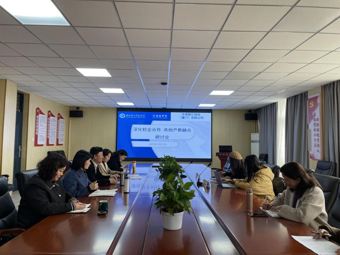 外院网讯(通讯员 孙玲燕)2023年3月23日,中语智汇科技(厦门)有限公司营销副总邱泽萍女士、区域经理蓝爱梅女士一行来我院访问,商讨校企合作模式。外院胡崇芝书记、刘晖院长、冶慧颖副院长、唐植君副院长出席会议,商务英语专业全体教师参加了本次研讨会。