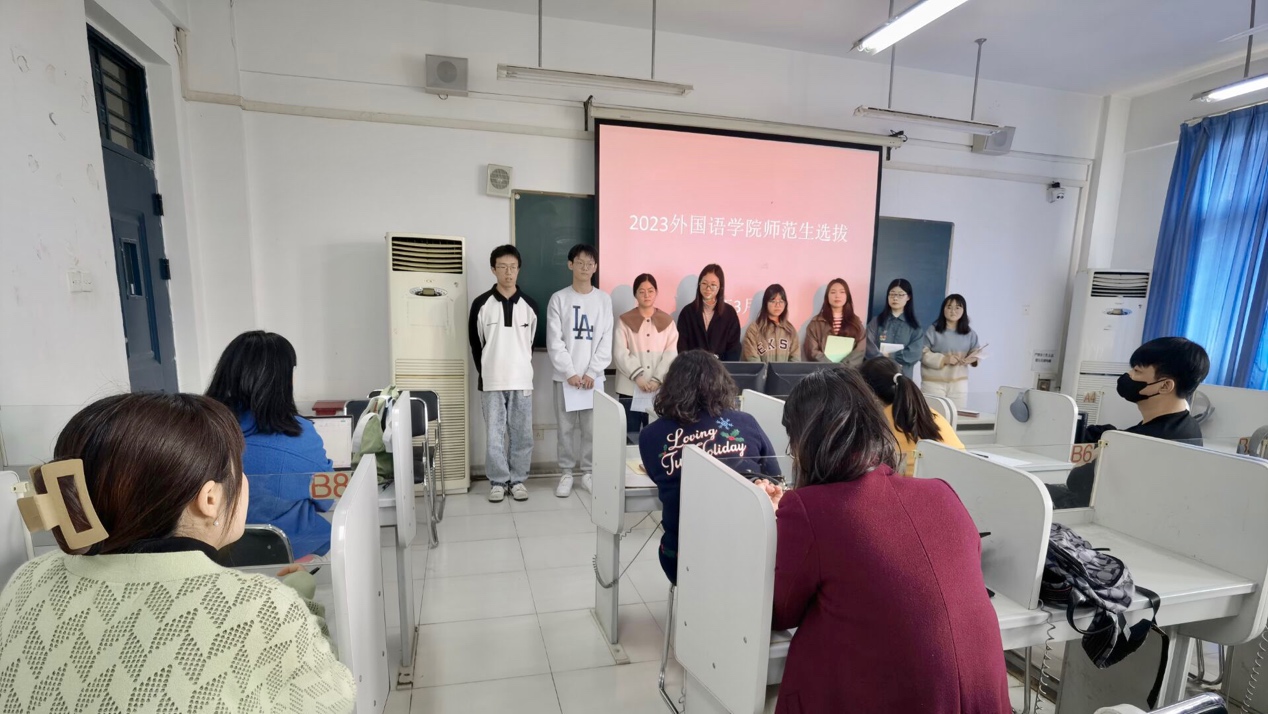 外院网讯(通讯员 曹天恺、金汤)2023年3月30日下午,2023年度我院师范生教学技能大赛选拔赛在三号楼三楼举行了第一次选拔。本次选拔主要面向大二和大三的学生,参赛选手来自学生自愿报名和任课教师推荐。2020级和2021级英语师范专业共有32名选手参加选拔。