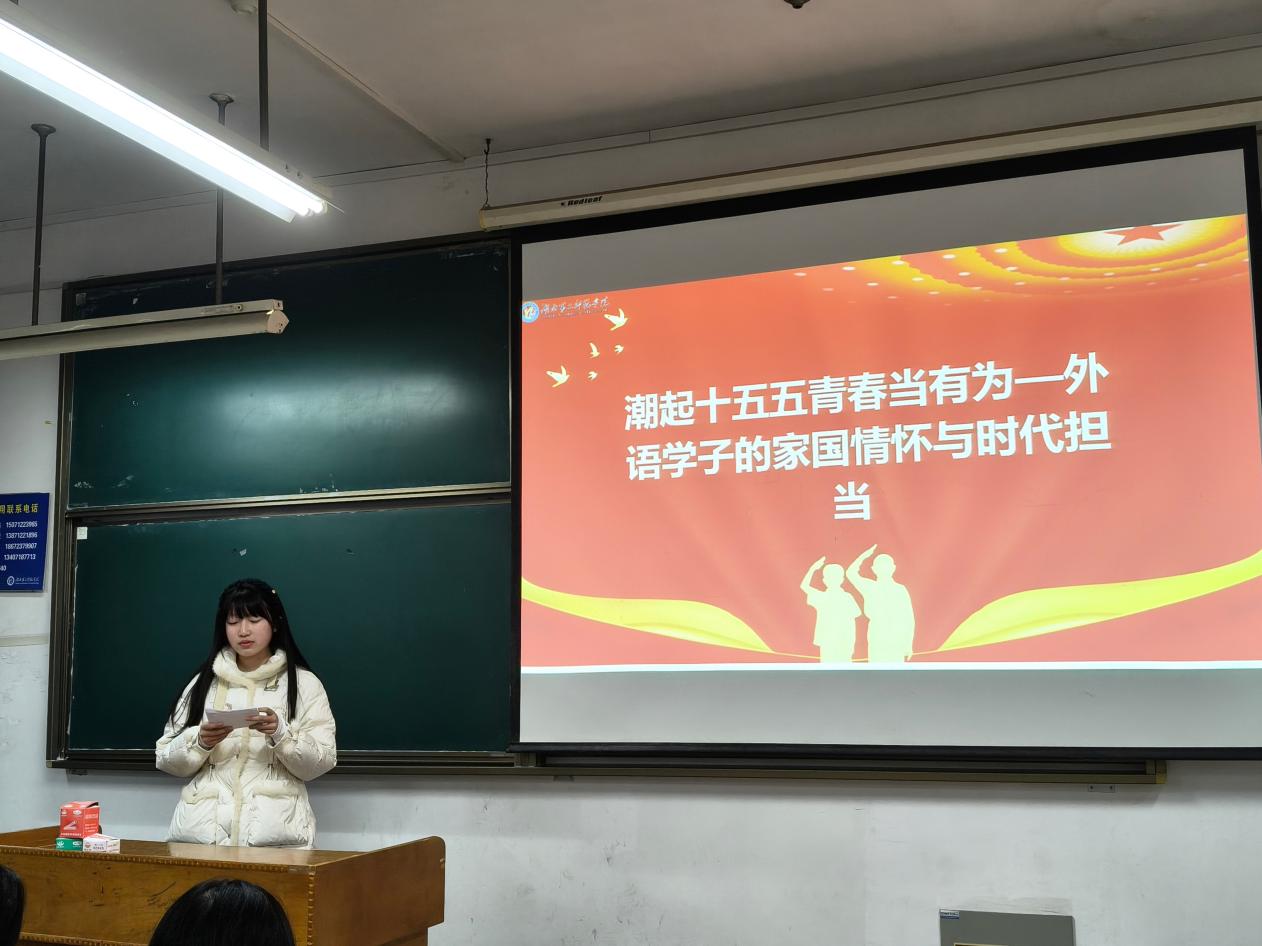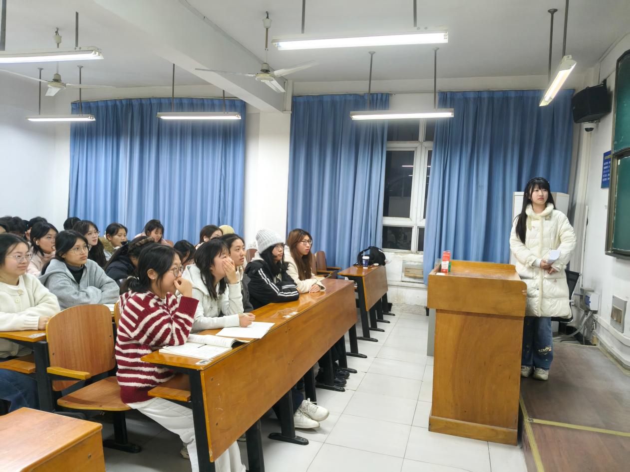 活动中,贾玉莹以“十五五”规划(2026-2030年国民经济和社会发展规划)的时代内涵为开篇,点明外语专业在国际交流中的“桥梁”定位。在“以专业为锚:青年的担当”板块,结合国际展会翻译、涉外社区服务、海外社交传播等真实场景,展示了外语学子将英语技能转化为服务社会、传播中国声音的实践路径——从精准译介“中国智造”技术参数,到为外籍居民翻译便民指南,再到用英语讲述中国乡村故事,让同学们直观感受到语言作为“文明纽带”的实际价值。
