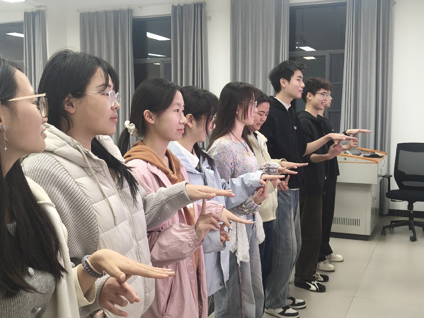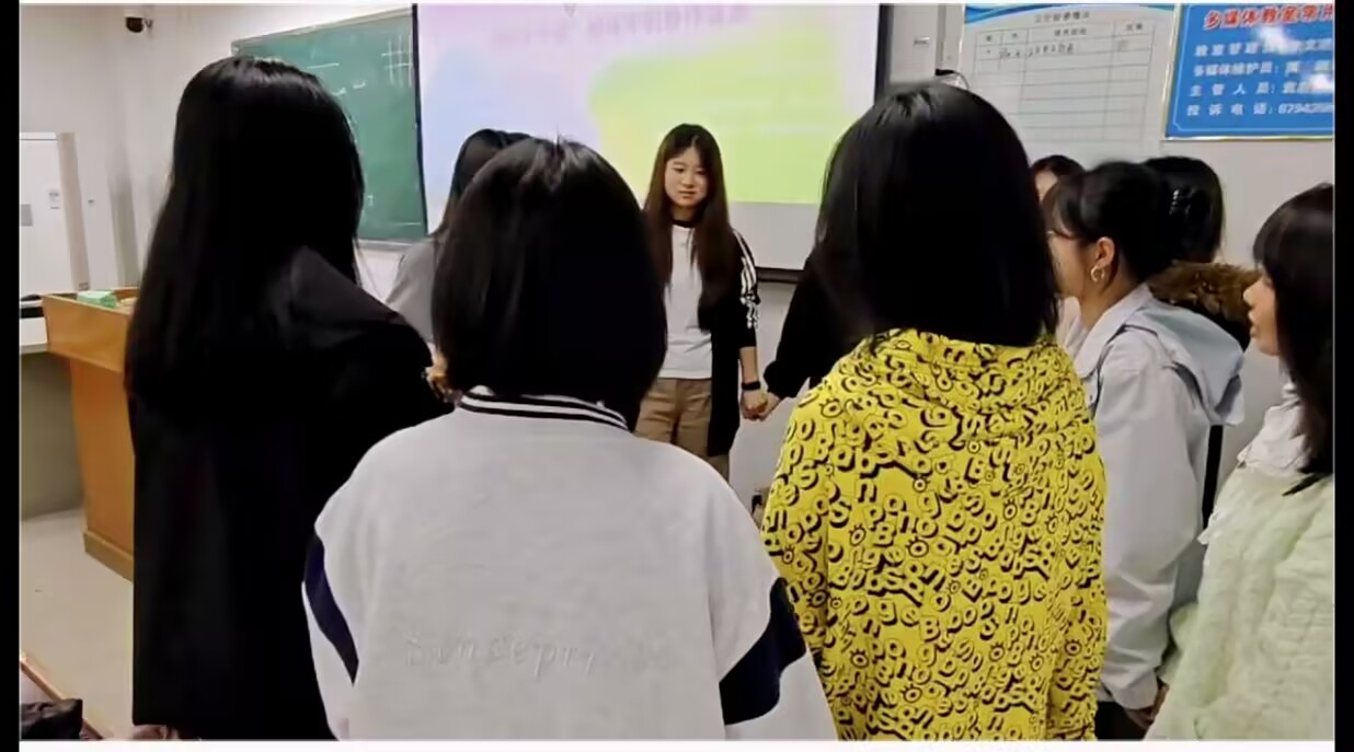 商务英语1班的“抓手指”暖场游戏将活动推向高潮。游戏紧扣“情绪”关键词,让学生在快速反应中体验情绪的即时变化,并通过自我夸奖环节强化积极心理暗示。“在游戏中学会欣赏自己”的标语,生动体现了心理健康教育融入趣味活动的理念。